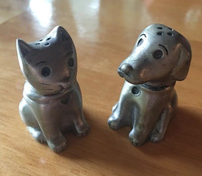 Vintage Pewter Cat Dog Salt And Pepper Shakers Shaker Set Anni Co Ebay