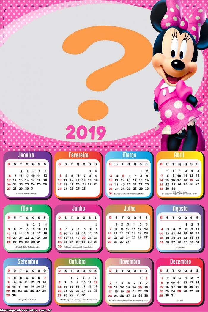 Calendário 2019 Minnie Cor de Rosa | Montagem de Fotos
